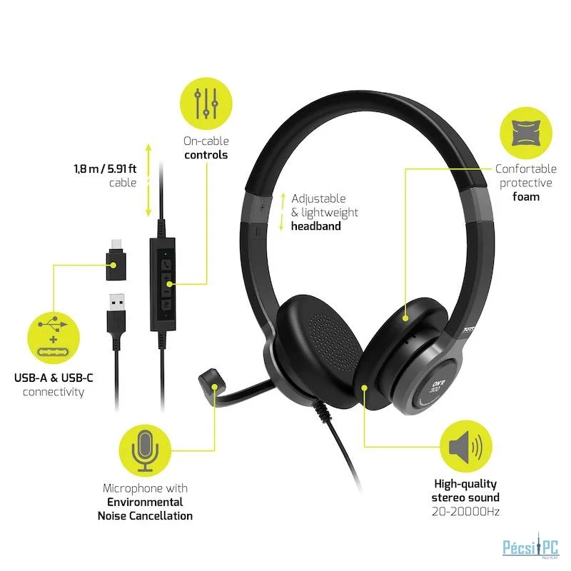 A mikrofonnal ellátott sztereó USB-headset PORT Connect egyesíti a hangminőséget, a kényelmet és a praktikumot. Kompatibilis a főbb kommunikációs platformokkal, és telepítés nélkül használható, így tökéletes szövetségese a megbízható és hatékony eszközt kereső szakembereknek, 2 év garanciával.