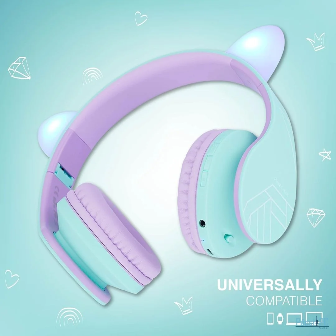 PowerLocus P2Kids Bluetooth Headset Teal/Purple Ears