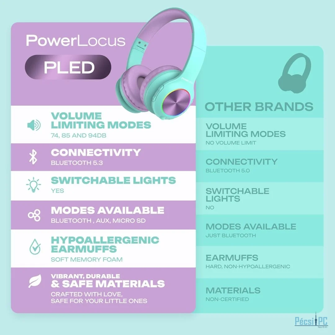 PowerLocus PLED Kids Bluetooth Headset Teal/Purple