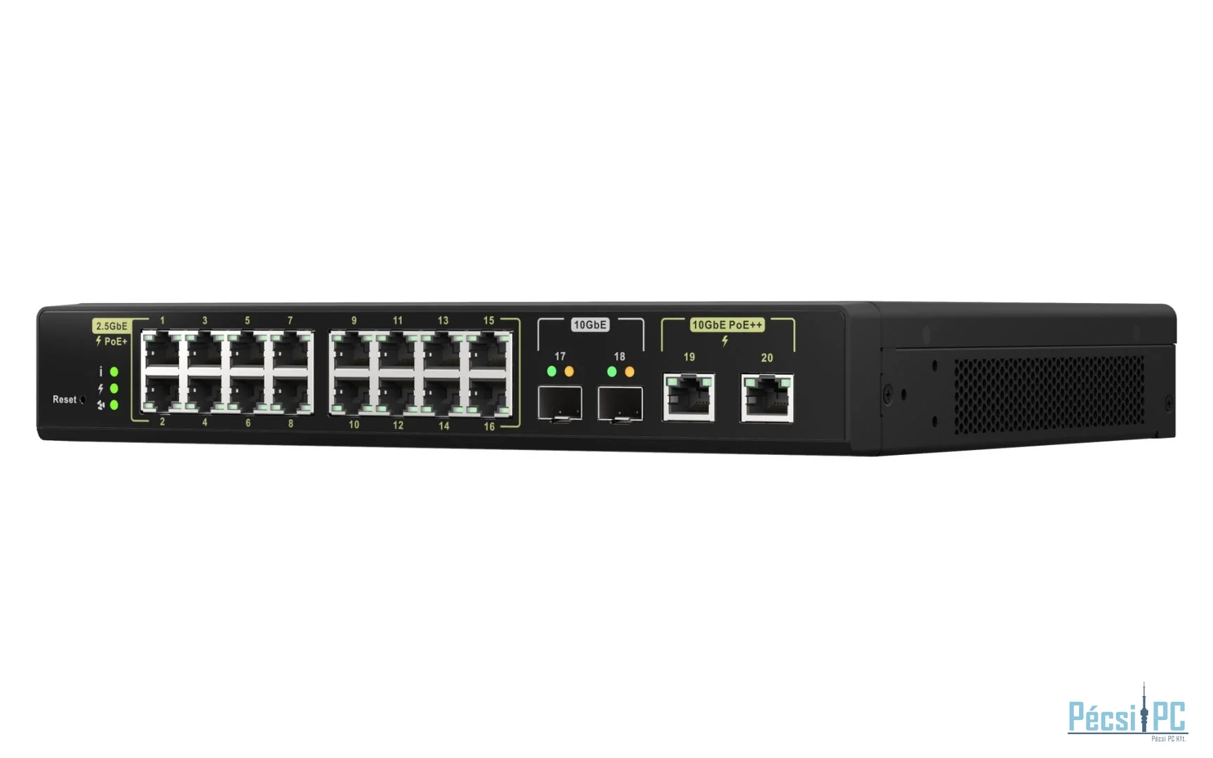 18xLAN port, LAN 10/100/1000/2500 Mbps, 16x2,5GB/s LAN, 2x10GB/s LAN, PoE osztály PoE++, SFP port 2, Menedzselhető, Rack, Teljesítmény 280W