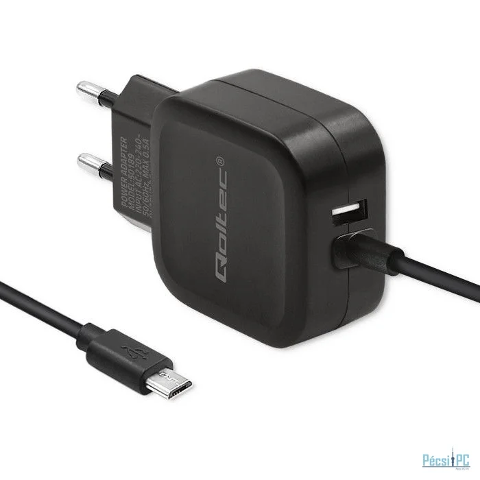 Hálózati töltő, 1xUSB-A, Kábel csatlakozó MicroUSB, 5V, 3,4A, 17W, Black