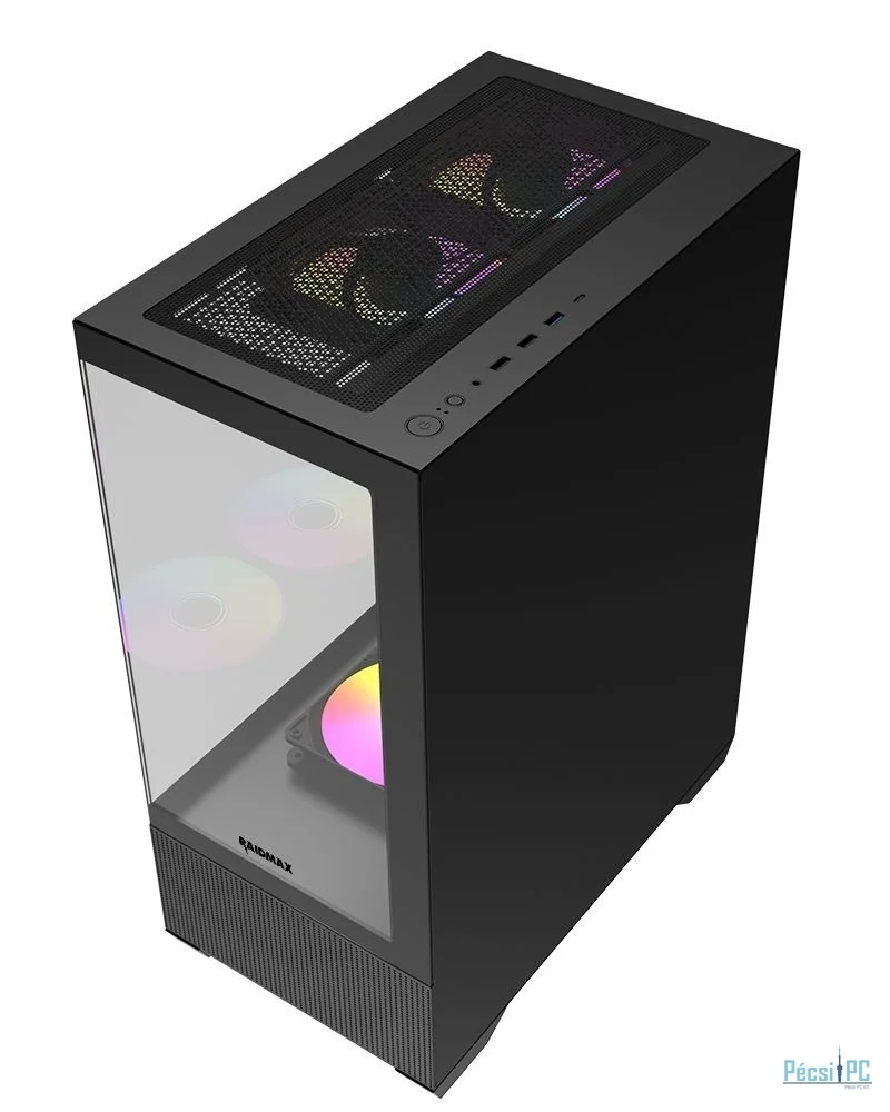 ATX, Black, 2x3,5", 3x2,5", 2xUSB2.0, 1xUSB3.0, Audio, Táp nélkül, 486x364x215mm, Ventilátor:5x12cm, Tempered glass window, RGB, Gamer