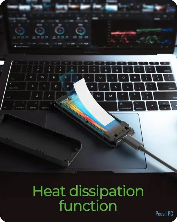 Hordozható, M.2, M.2, Type-C, USB3.2, NVMe, Műanyag, Passzív, Black, RGB, Gamer