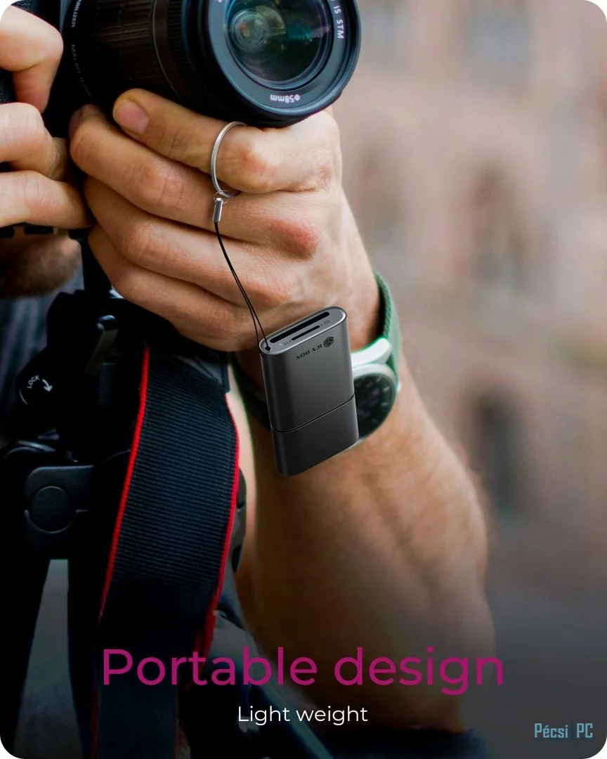 A kompakt és könnyű IB-CR204-CU3 a hordozhatóság jegyében készült, a tartósság feláldozása nélkül. Kis méretének köszönhetően könnyen elfér a zsebében vagy táskájában, így tökéletes társ utazáshoz vagy ingázáshoz. Hordozható kialakítása biztosítja, hogy mindig kényelmesen és megbízhatóan hozzáférhessen adataihoz és kezelhesse azokat.