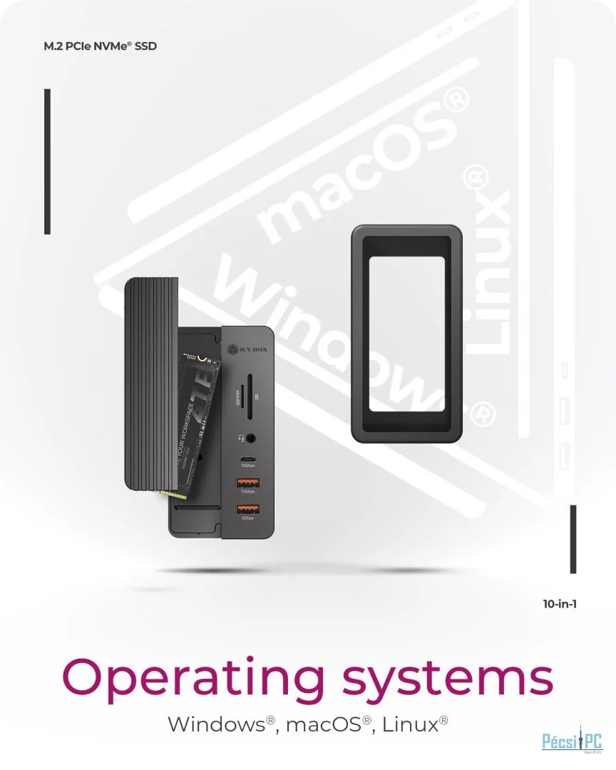 Akár Windows, macOS vagy Linux rendszerrel dolgozik, ez a DockingStation illeszkedik meglévő beállításaihoz. Úgy tervezték, hogy az eszközök és rendszerkörnyezetek széles skálájával működjön együtt, így anélkül válthat a munkaállomások között, hogy aggódnia kellene a kompatibilitás miatt, vagy hogy minden rendszerhez külön tartozékokra lenne szüksége.