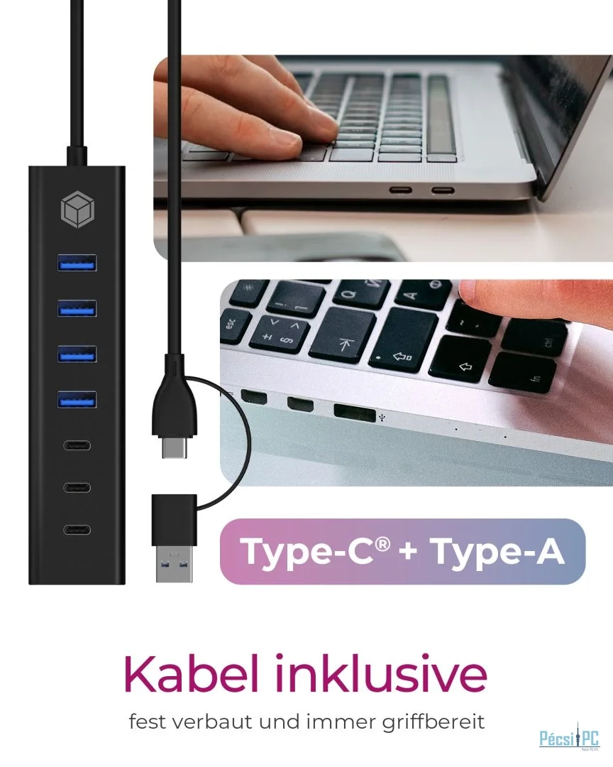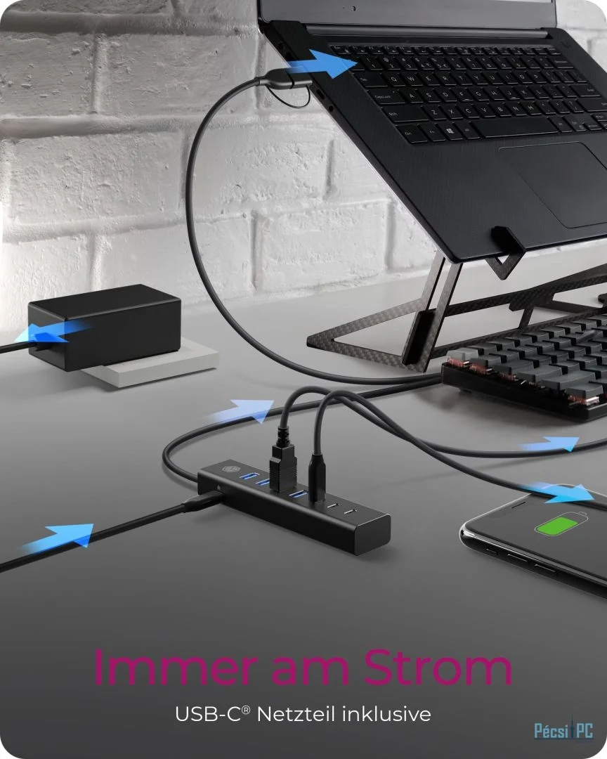 7xPort, USB 3.2, aktív, Black