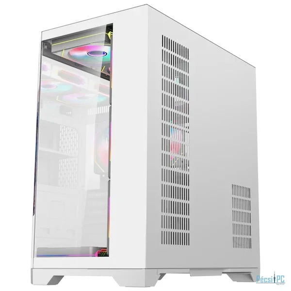 ATX, White, 2x3,5", 3x2,5", 1xUSB2.0, 1xUSB3.0, Audio, Táp nélkül, 435x418x280mm, Ventilátor:7x12cm, Tempered glass window, RGB, Gamer