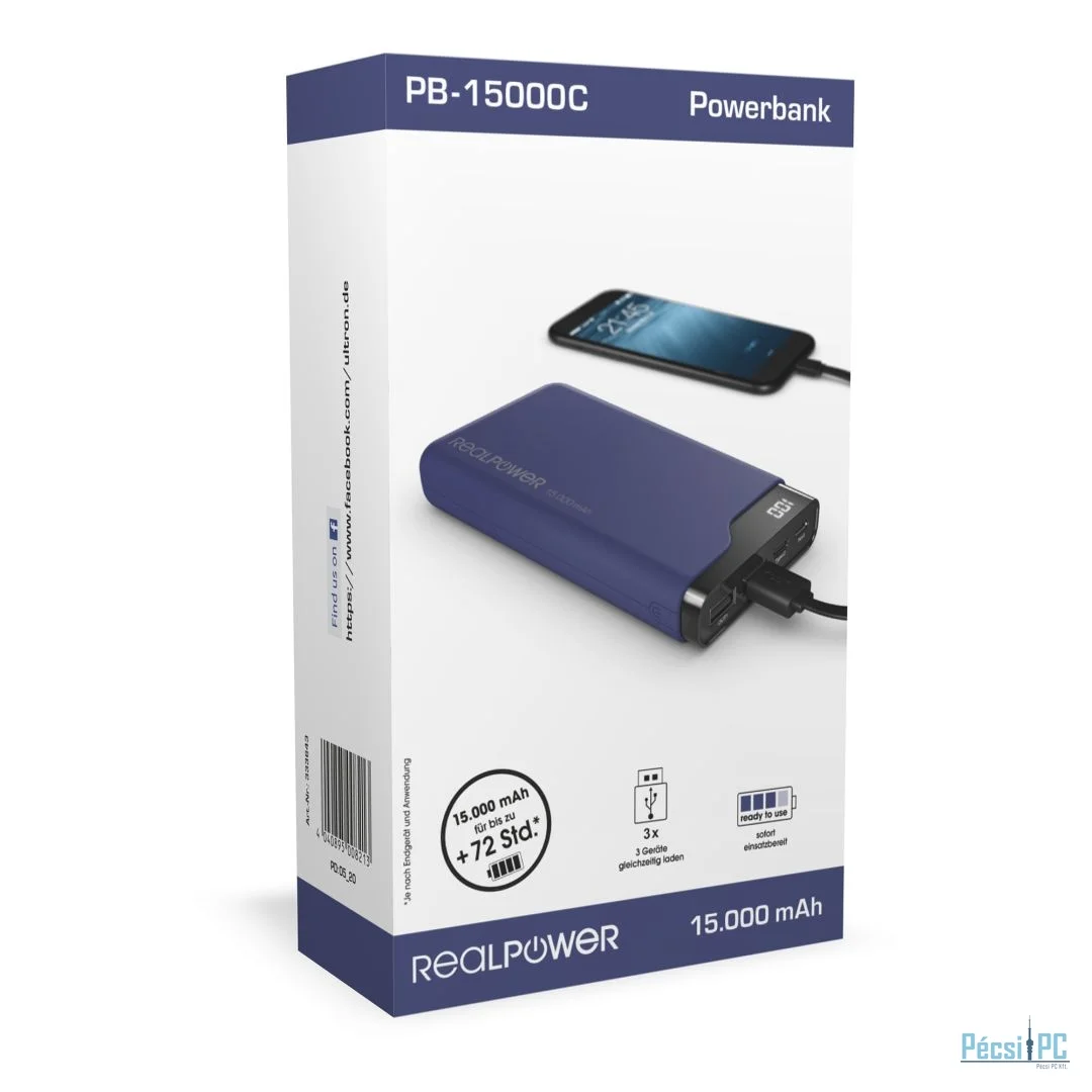 Realpower PB-15000C Startseite 15000mAh PowerBank Navy Blue