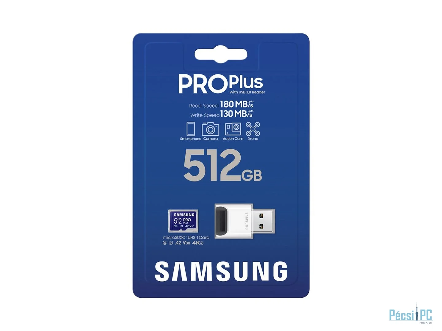 Samsung 512GB microSDXC Pro Plus Class10 U3 A2 V30 adapter nélkül