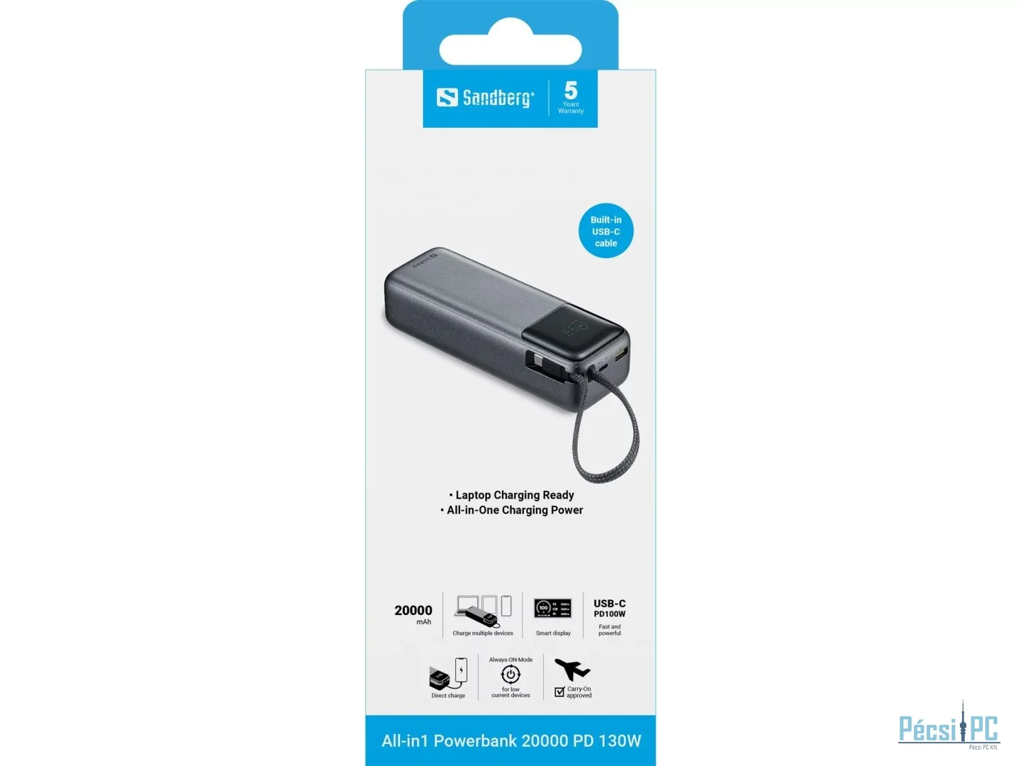 Sandberg All-in1 PD130W 20000mAh Powerbank Black