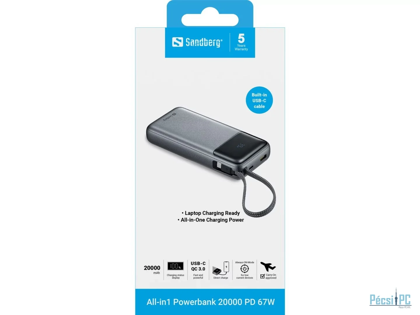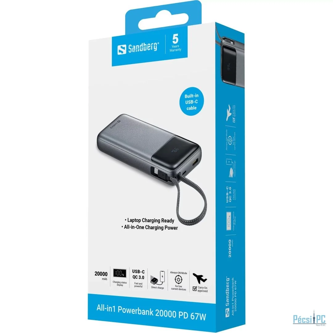 Sandberg All-in1 PD67W 20000mAh Powerbank Blue