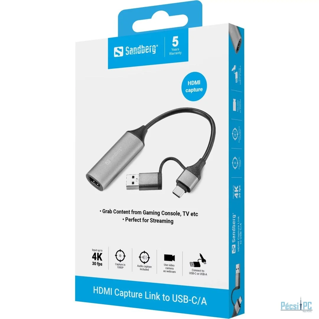 Sandberg HDMI Capture Link to USB-C/A Grey