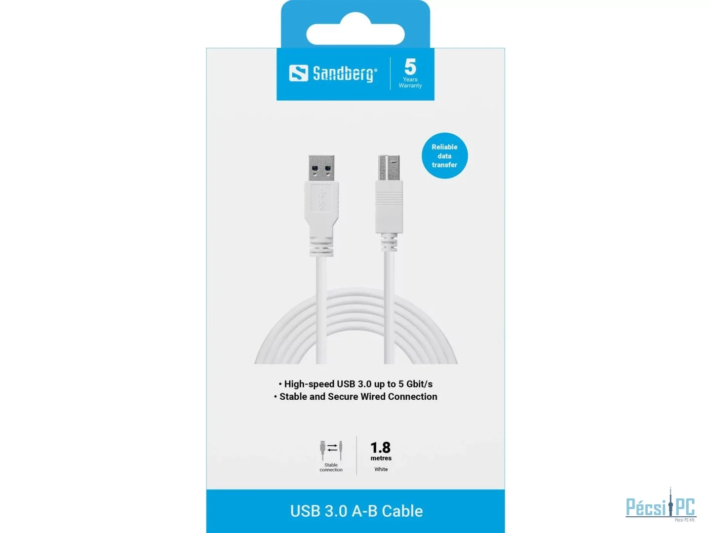 Sandberg USB 3.0 A-B Cable 1,8m White