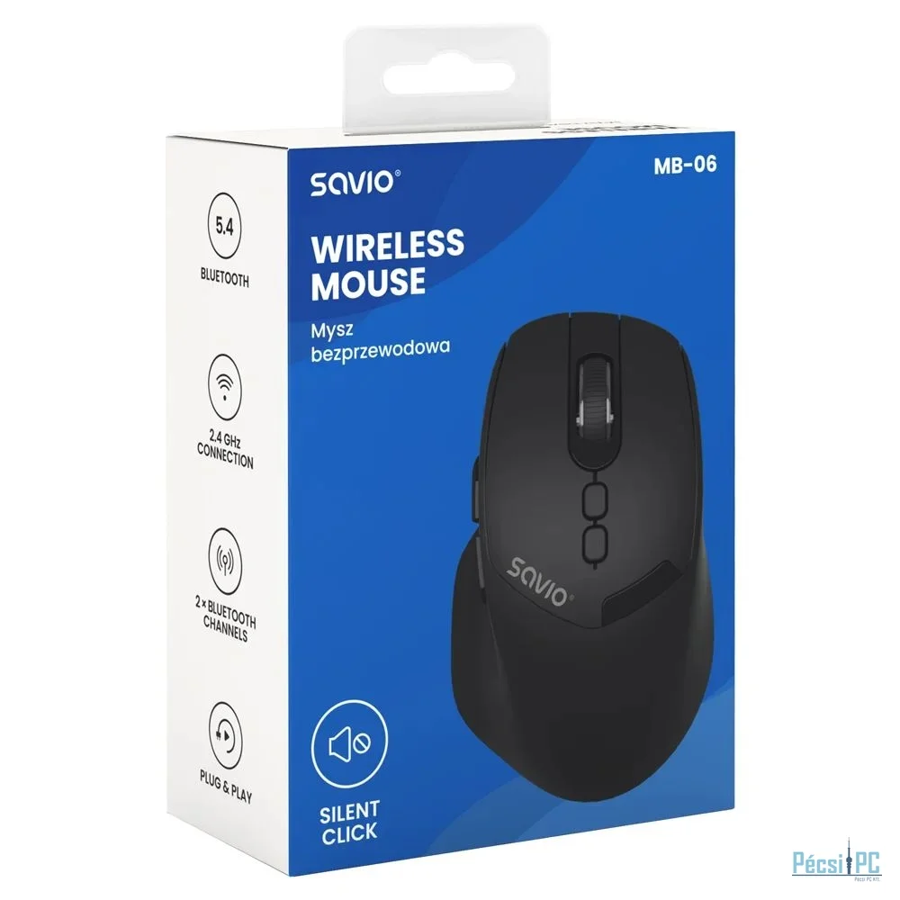 Vezeték nélküli, Wireless 2,4GHz, Bluetooth, Optikai, 2000DPI, Black, Újratölthető, Csendes működés