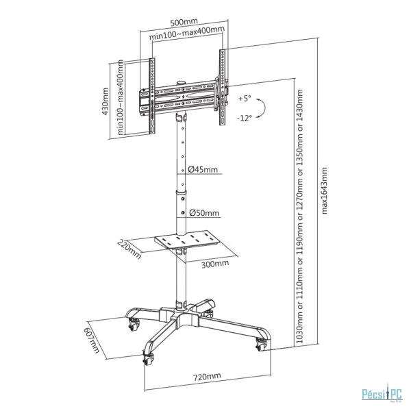 Kijelző, Padlóállvány, Min 32", Max 55"