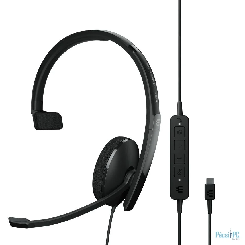 Headset, Féloldalas, USB-C, Kábel:1,8m, Mikrofon, Black