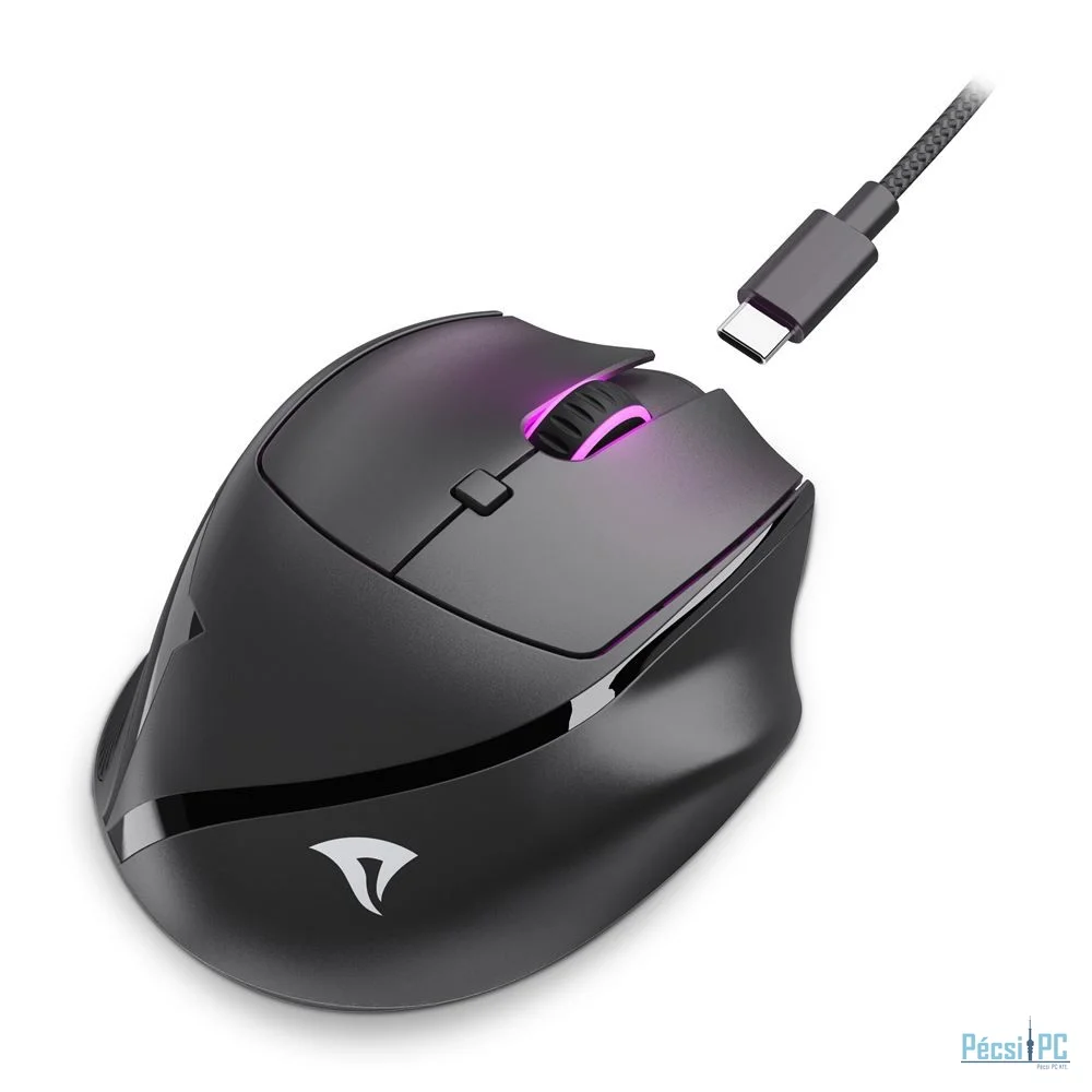 Vezeték nélküli, USB, USB-C, Wireless 2,4GHz, Optikai, 4000DPI, Black, Újratölthető, RGB, Gamer