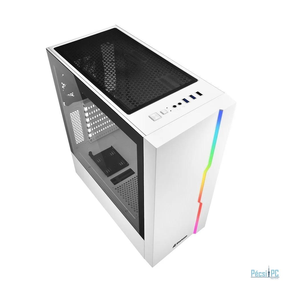 ATX, White, 2x3,5", 5x2,5", 1xUSB2.0, 2xUSB3.0, Audio, Táp nélkül, 400x190x456mm, Ventilátor:1x12cm, Tempered glass window, RGB, Gamer
