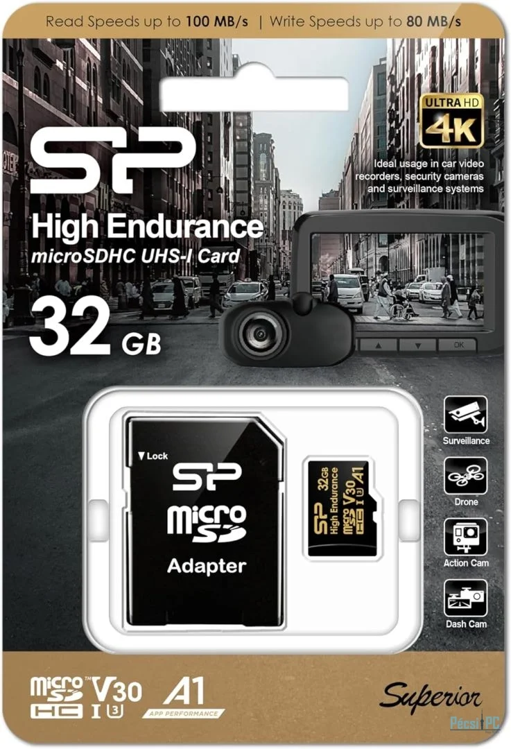 Silicon Power 32GB microSDHC Gold Series High Endurance Class 10 UHS-I U3 V30 A1 + adapterrel