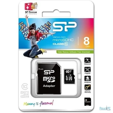 Silicon Power 8GB microSDHC Class10 + SD adapterrel