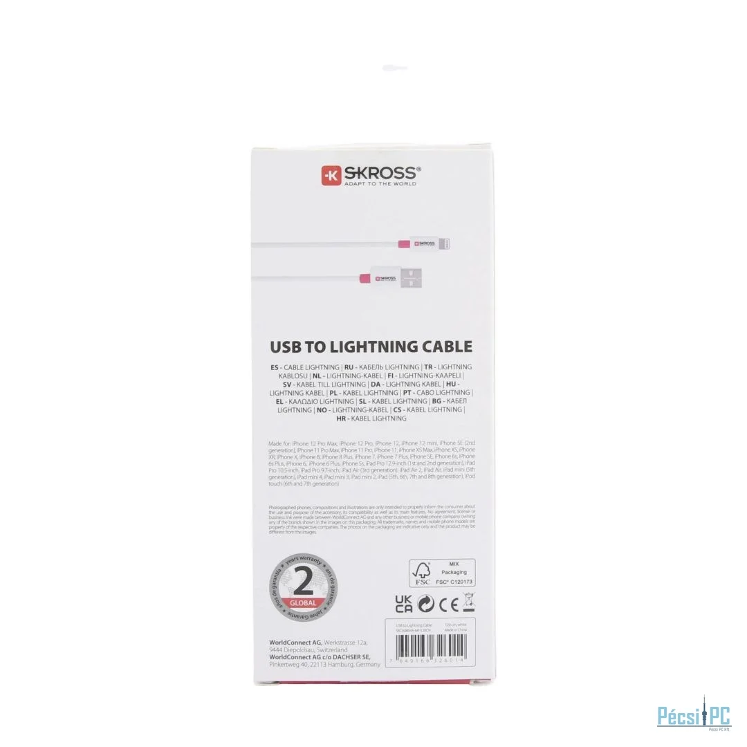 USB kábel, USB-A, Lightning, USB2.0, Male/Male, 1,2m, White, Töltő és adatkábel