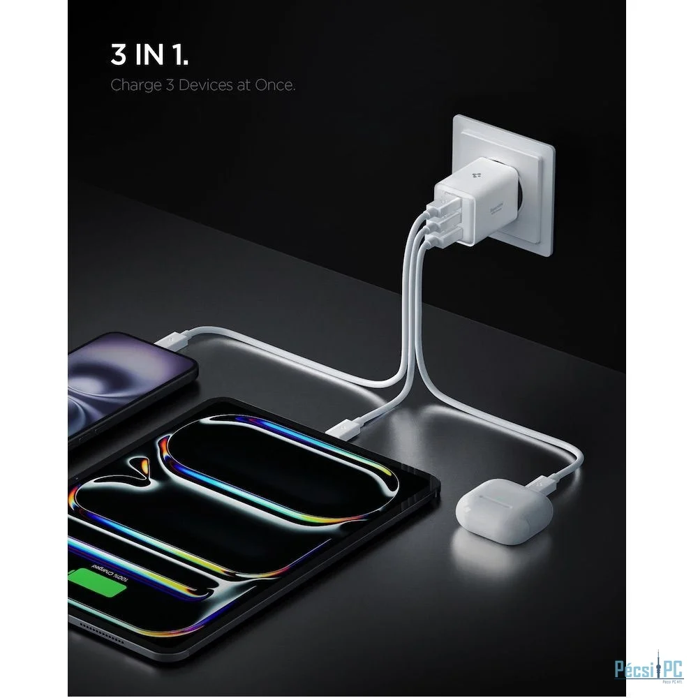 Adapter, 1xUSB-A, 2xUSB-C, 5V/9V/12V/15V/20V, 3A, 47W, QC, PD, White