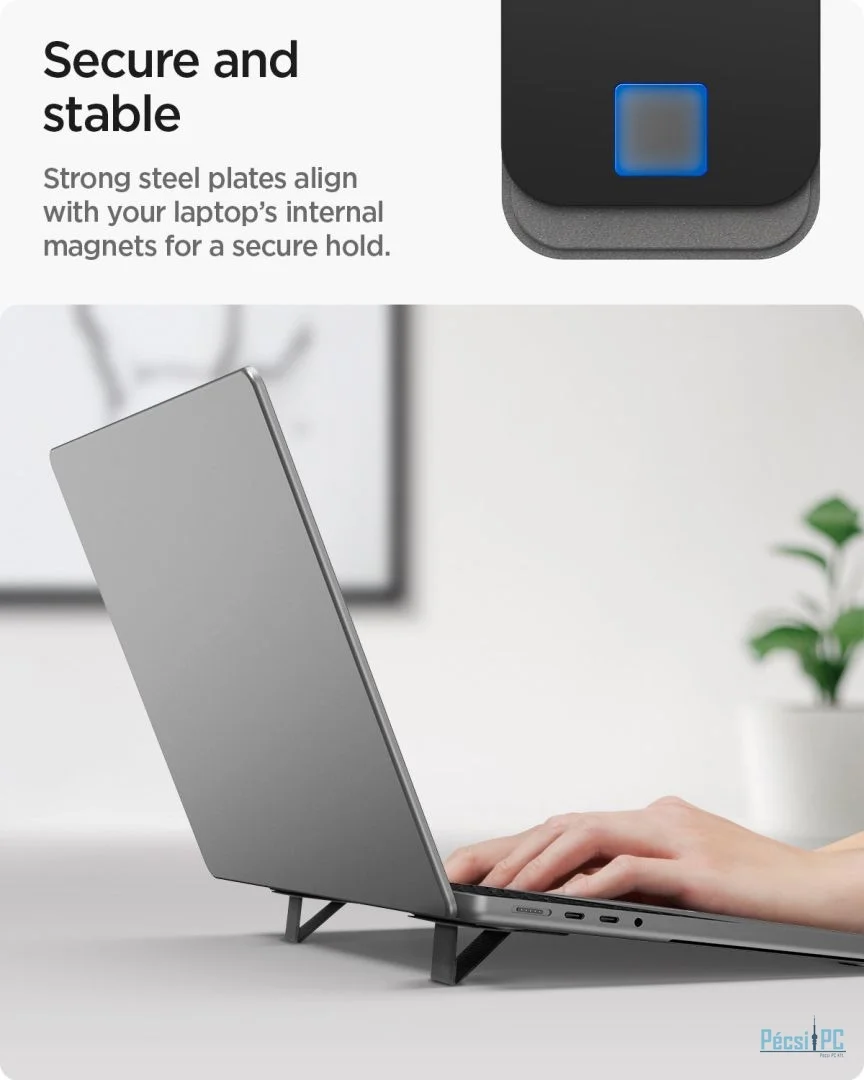 Stabil, csúszásmentes alátámasztás: A texturált csúszásgátló PU anyag biztonságosan a helyén tartja a laptopot, megakadályozva a csúszást gépelés vagy böngészés közben.