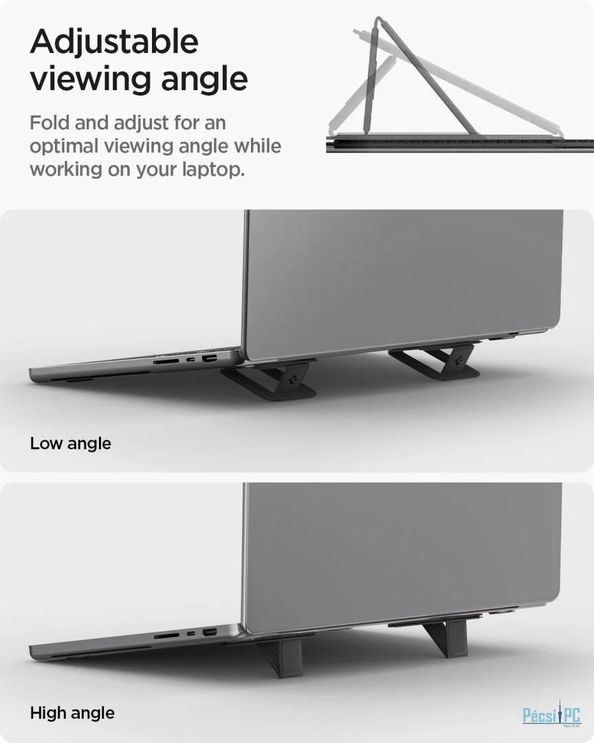 Állítható nézet a jobb ergonómia érdekében: Könnyedén összecsukhatja az állványt az optimális betekintési szög eléréséhez, amely segít csökkenteni a nyak megterhelését és javítja a testtartást a hosszú munkamenetek során.