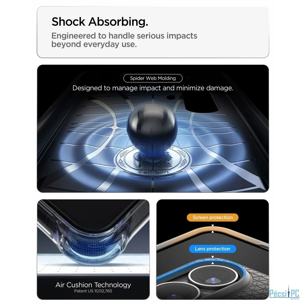 Air Cushion® technológia: Tanúsított katonai szintű (MIL-szintű) védelmet nyújt a sarkokban található speciális légkamrákkal, amelyek elnyelik az ütési energiát leesés esetén.
