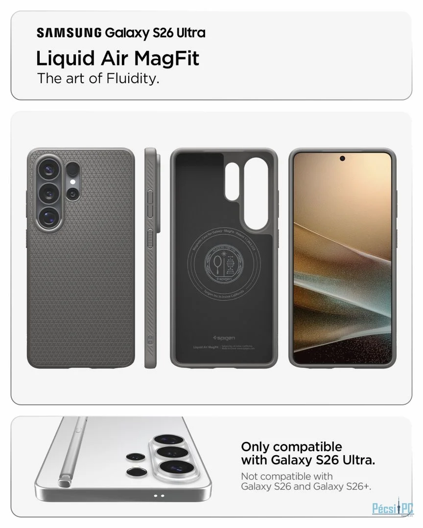 A Spigen Liquid Air MagSafe kiváló minőségű, rugalmas TPU-ból készült, így a felhelyezés és eltávolítás gyerekjáték. Vékony kialakítása nem okoz felesleges súlyt, megőrzi a Samsung Galaxy S26 Ultra eleganciáját , míg a precíz kivágások biztosítják, hogy az S-Pen és a portok közvetlen és akadálytalanul hozzáférhetőek legyenek, miközben védik a mindennapi karcolásoktól .
