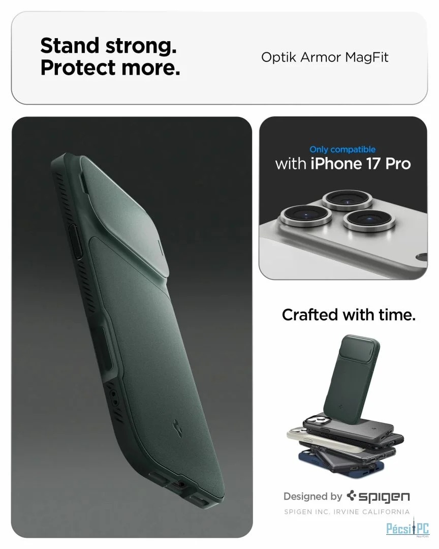 Spigen Optik Armor MagSafe case for iPhone 17 Pro Abyss Green
