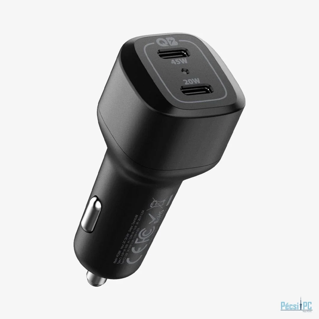 Autós töltő, 2xUSB-C, 5V, 65W, PD, Black
