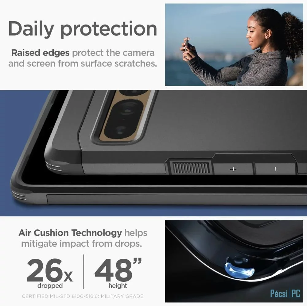 A sorozat esete Kemény páncél márkák Spigen a cég új borítója. Kétrészes szerkezete kopásálló hőre lágyuló műanyagból és erősítő polikarbonát keretből készül. A fedél belsejében technológiai hab formájában töltődik be, amely további védőréteget biztosít a dudoroktól vagy a készülék leesésétől.