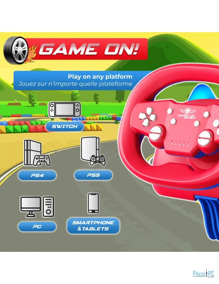 Kormány, PC/PS3/PS4/Nintendo Switch/Android/iOS, Wireless, Nincs váltó, Nincs pedál, Gamer