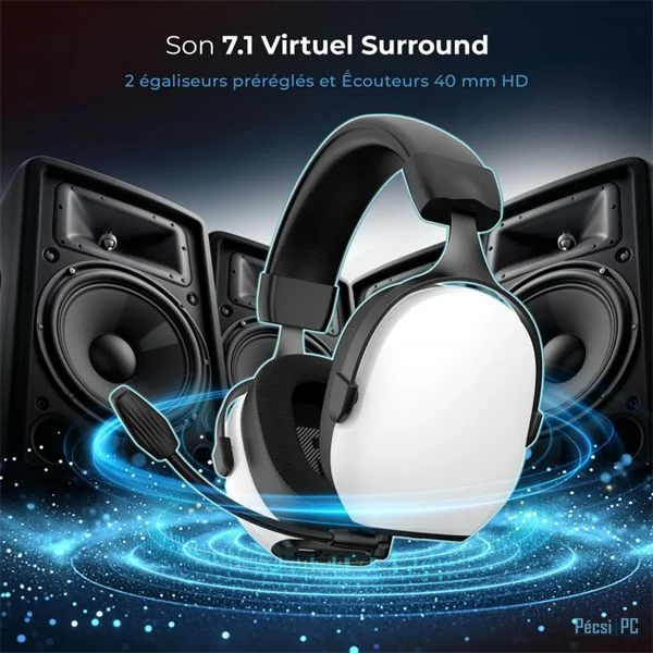 Headset, 7.1, 32Ohm, 20Hz-20k, Mikrofon, Wireless, Hatótáv:10m, Black, Bluetooth, Gamer