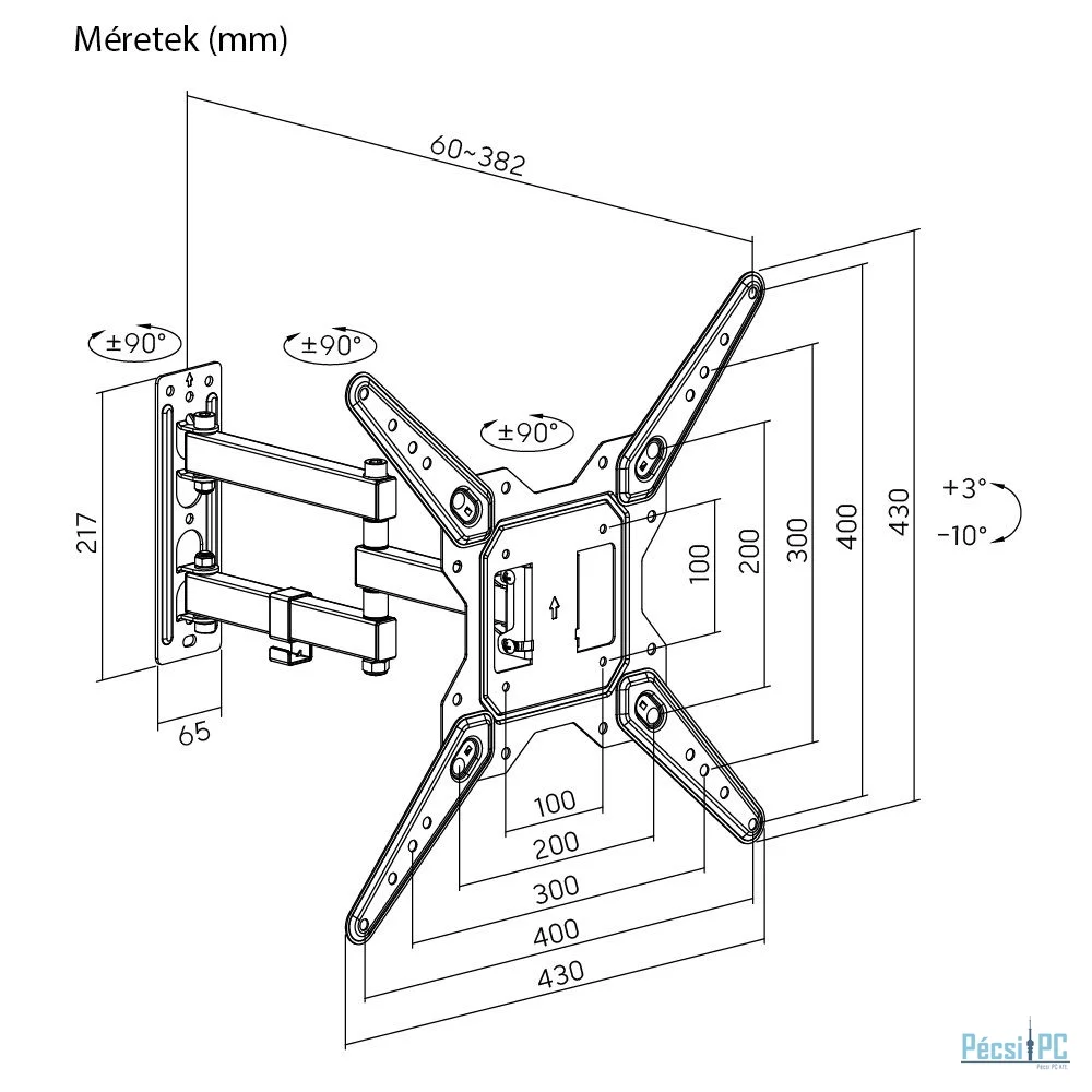 Kijelző, 23"-55", Fali