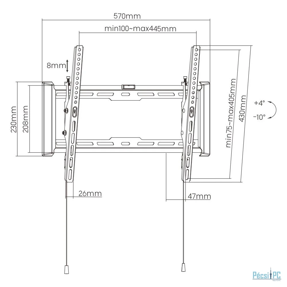 Kijelző, 32"-70", Fali