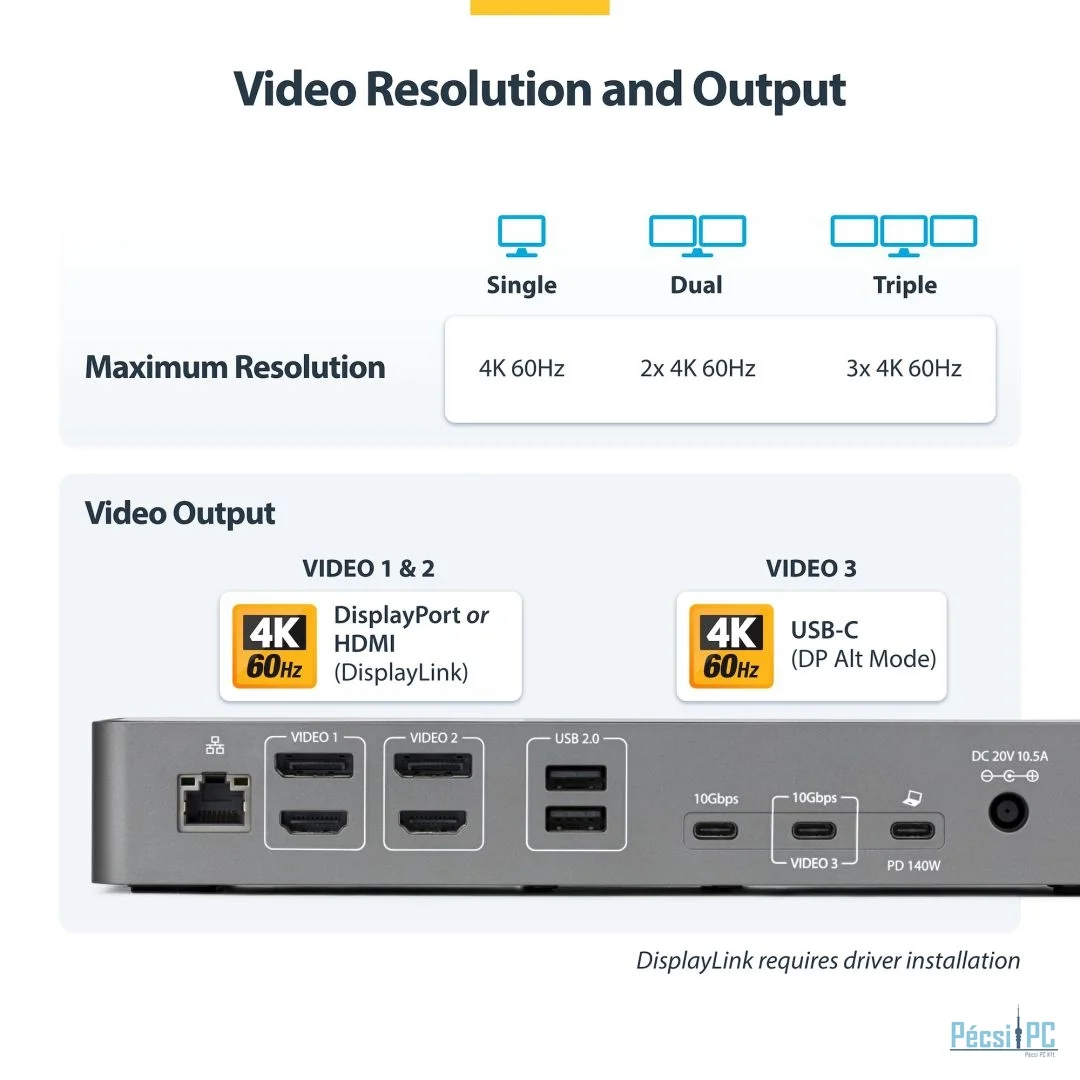 Startech DK30C2DPEPRUE Triple-Monitor USB-C Docking Station