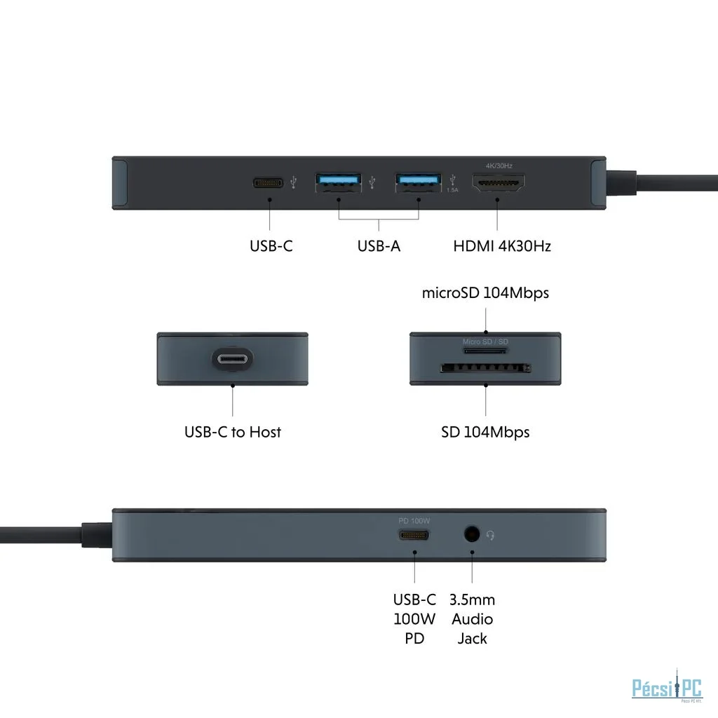 Töltse laptopját, táblagépét és egyéb eszközeit az USB-C 100 W-os Power Delivery porton keresztül, miközben egyidejűleg más csatlakoztatott eszközöket is táplálhat.