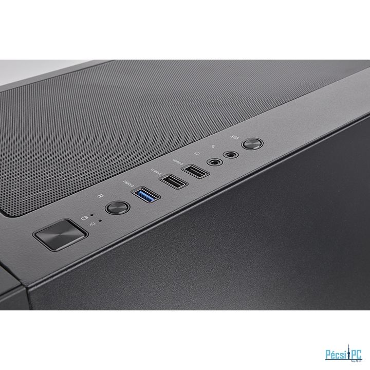 ATX, Black, 2x3,5", 2x2,5", 2xUSB2.0, 1xUSB3.0, Audio, Táp nélkül, 442x210x480mm, Tempered glass window, RGB, Gamer