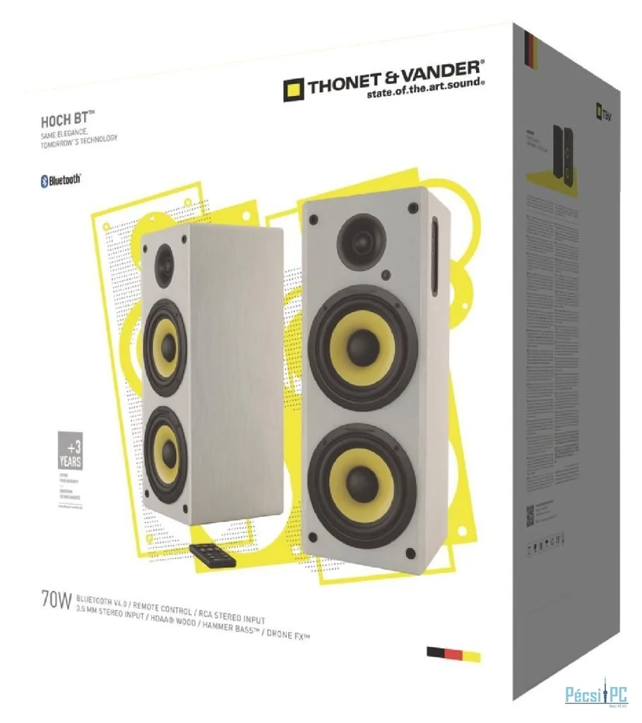 2.0, 70W, 2xRCA, 3,5mm jack, Bluetooth, Távirányító, 50Hz-20kHz, HDAA Box, White