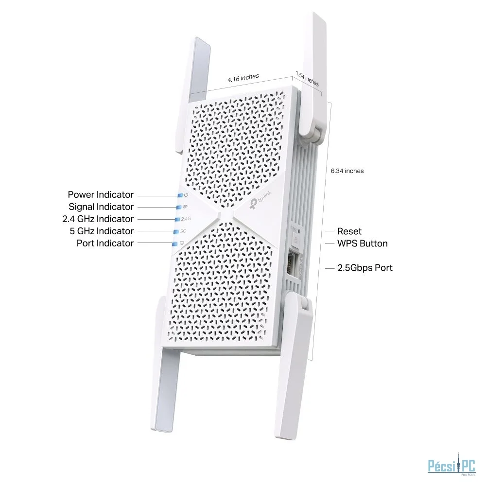 Range extender, LAN 1, LAN 2,5 Gigabit, 2.4GHz 688Mbps, 5GHz 5764Mbps, Dual Band