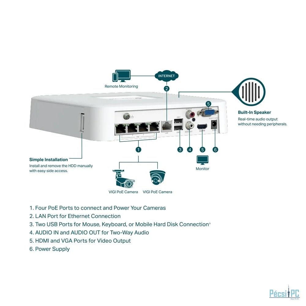 TP-Link VIGI NVR1104H-4P VIGI 4 Channel PoE+ Network Video Recorder