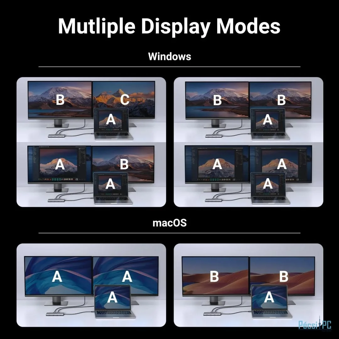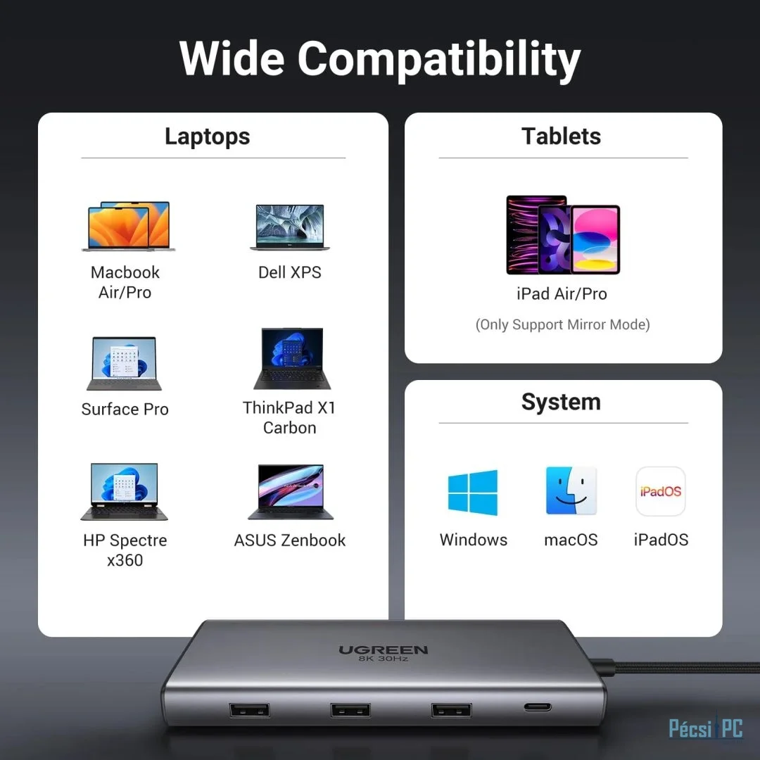 UGREEN Revodok Pro 210 10-in-1 USB-C Hub (Dual HDMI 4K@60Hz, 100W PD) Grey