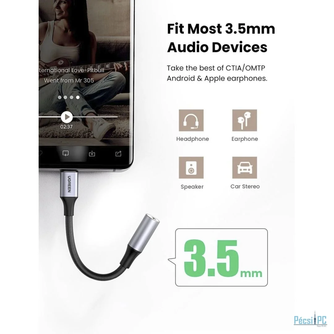 UGREEN USB-C to 3.5mm Jack Audio Cable 10cm Black