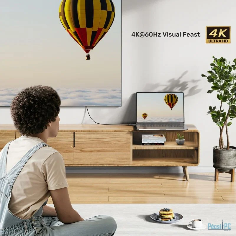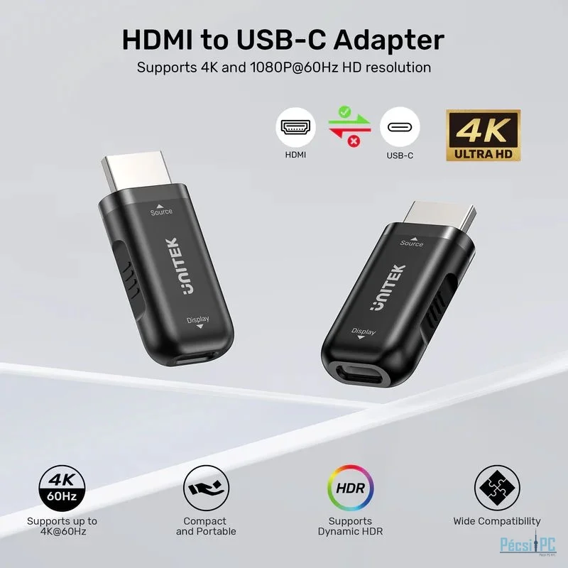 Videó adapter, Adapter, HDMI, USB-C, Ultra HD 4K, Male/Female, Black