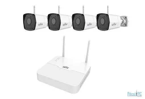 Uniview gyári 2MP-es 4 kamerás WiFi-s csomag (1db NVR és 4db WiFi-s csőkamera 4mm fix objektívvel, mikrofonnal)