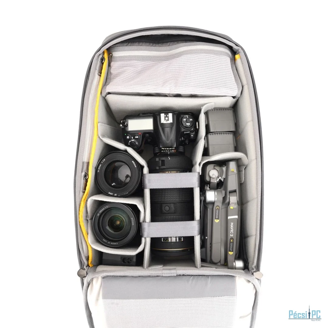 Ezen kívül a hátizsák tartozéktáskát is tartalmaz, amelyben kábeleket, kártyákat és sok mást rendezhet. A maximális kényelem érdekében utazás közben a párnázott hátrész a testhez simul, a szálak pedig fokozzák a szellőzést, hogy hűvös maradjon. A vállpántok mézhálós TPE-párnázással is rendelkeznek, amely segít csökkenteni a hosszan tartó cipelés okozta megterhelést.