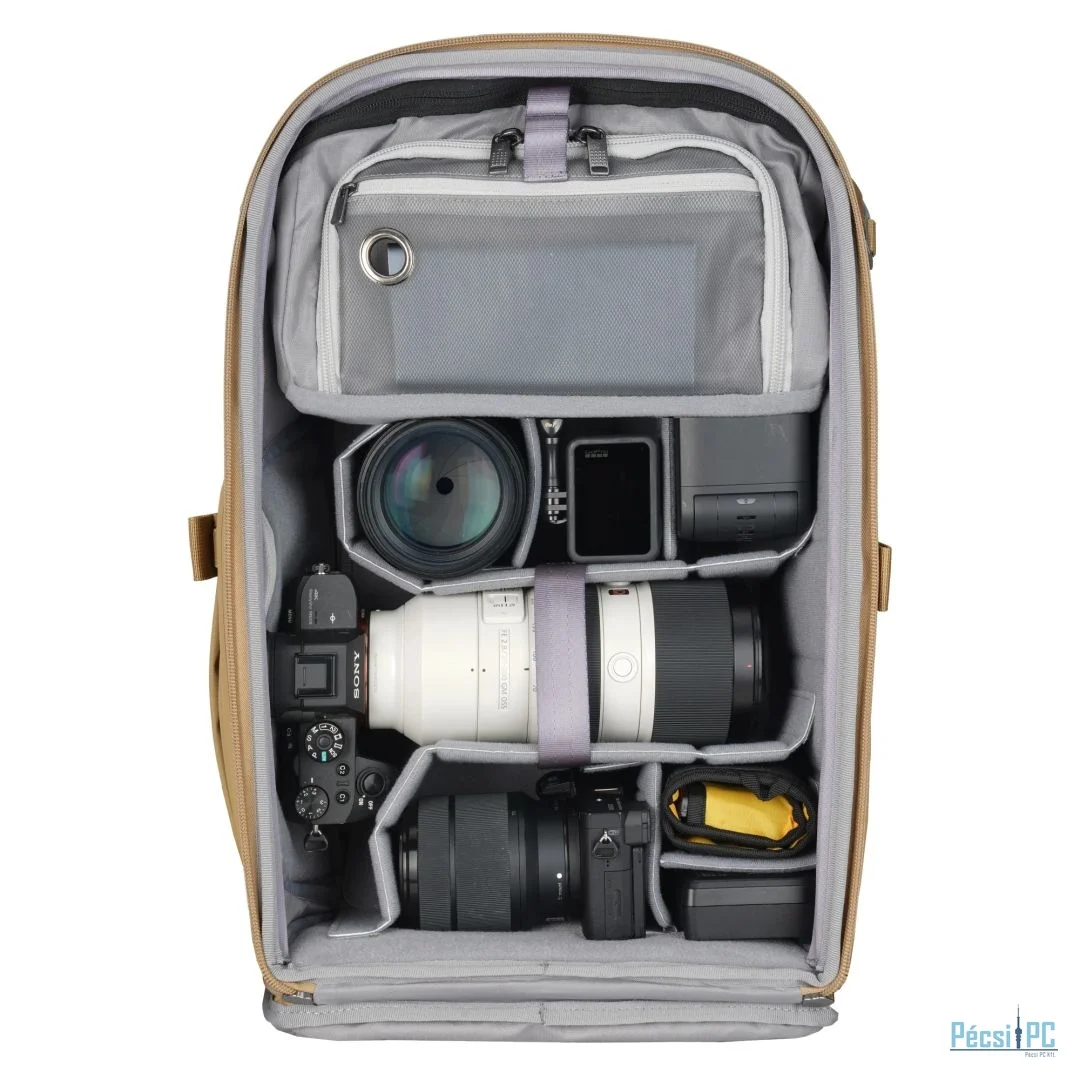 A fényképezőgép rekesz lehetővé teszi egy full-frame fényképezőgép és akár 4 objektív (70-200mm f2.8-ig) szállítását, amelyeket karcsú EVA elválasztók választanak el, amelyeket úgy terveztek, hogy maximalizálják a rendelkezésre álló helyet, miközben védik a felszerelést. Ezeket az elválasztókat az Ön által preferált elrendezéshez igazíthatja, vagy eltávolíthatja őket, hogy egy mindennapi hátizsákot hozzon létre. Élvezze a hátulján keresztül történő teljes hozzáférést a fényképezőgép rekeszhez, gyors felső hozzáféréssel a fényképezőgéphez -- így másodpercek alatt készen állhat a felvételkészítésre.
