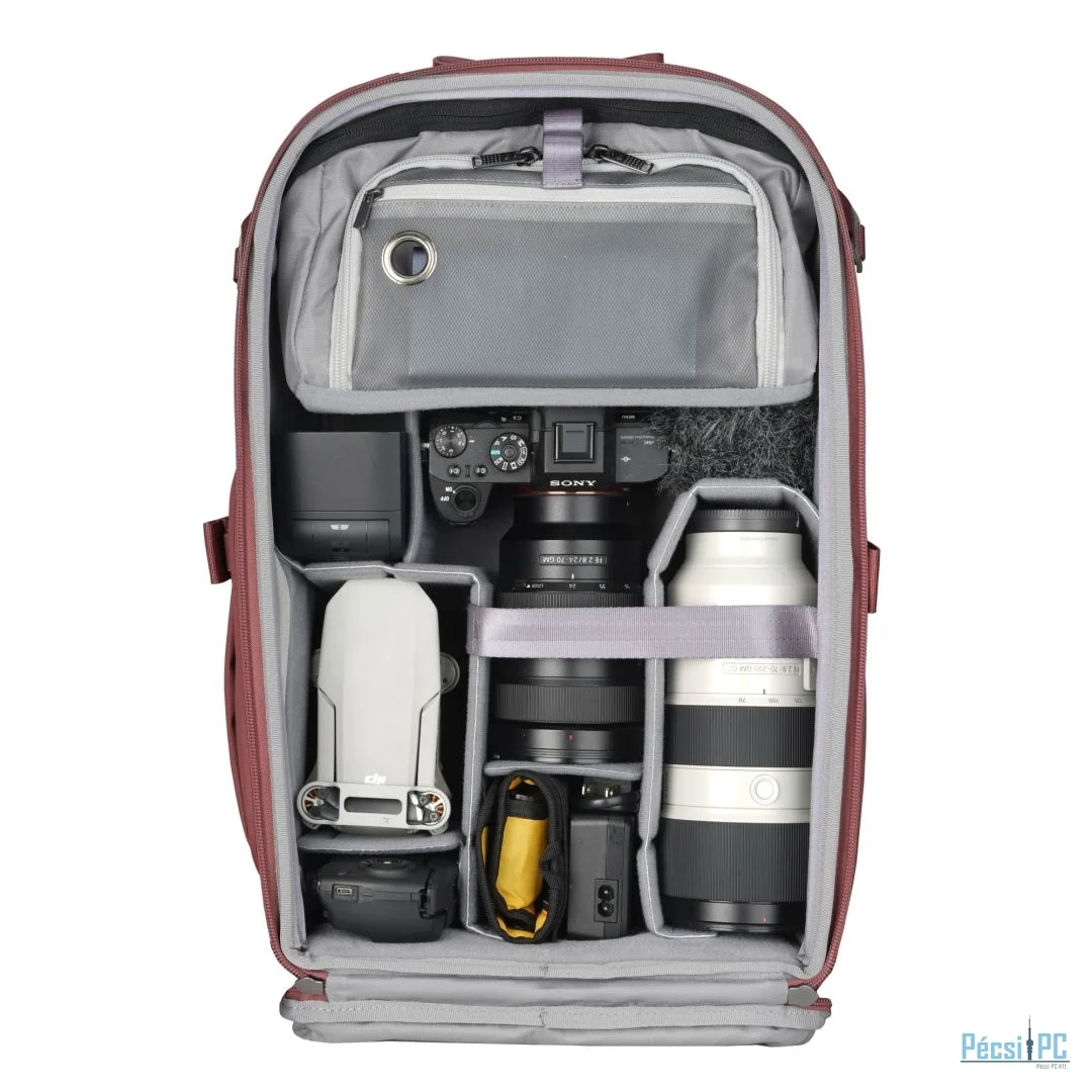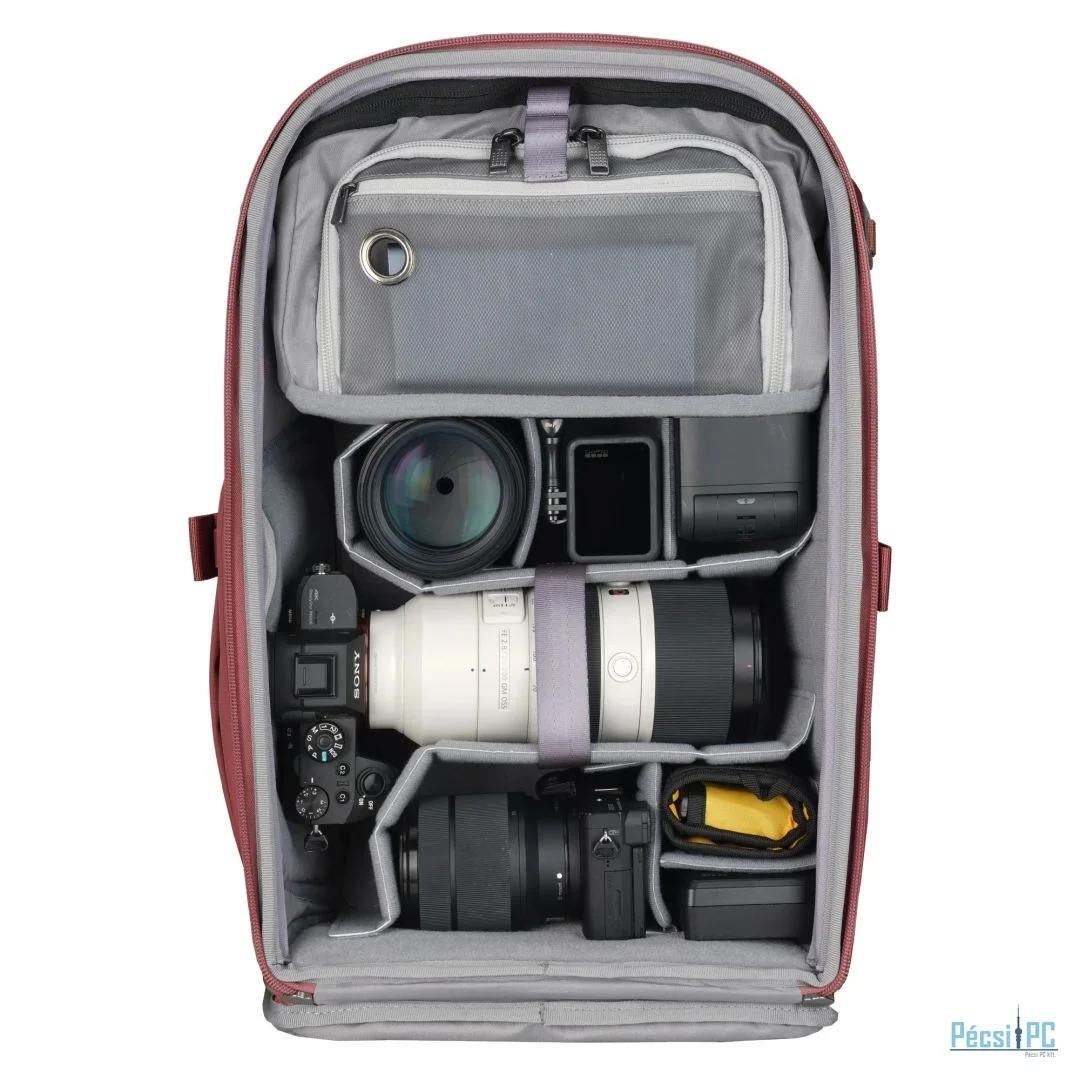 A fényképezőgép rekesz lehetővé teszi egy full-frame fényképezőgép és akár 4 objektív (70-200mm f2.8-ig) szállítását, amelyeket karcsú EVA elválasztók választanak el, amelyeket úgy terveztek, hogy maximalizálják a rendelkezésre álló helyet, miközben védik a felszerelést. Ezeket az elválasztókat az Ön által preferált elrendezéshez igazíthatja, vagy eltávolíthatja őket, hogy egy mindennapi hátizsákot hozzon létre. Élvezze a hátulján keresztül történő teljes hozzáférést a fényképezőgép rekeszhez, gyors felső hozzáféréssel a fényképezőgéphez -- így másodpercek alatt készen állhat a felvételkészítésre.
